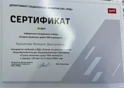 Поздравляем ученицу 7 класса Красилову Валерию с победой в конкурсном отборе «Страна железных дорог-ТИН каникулы»! Валерия поощряется путевкой в ВДЦ «Смена»!!!